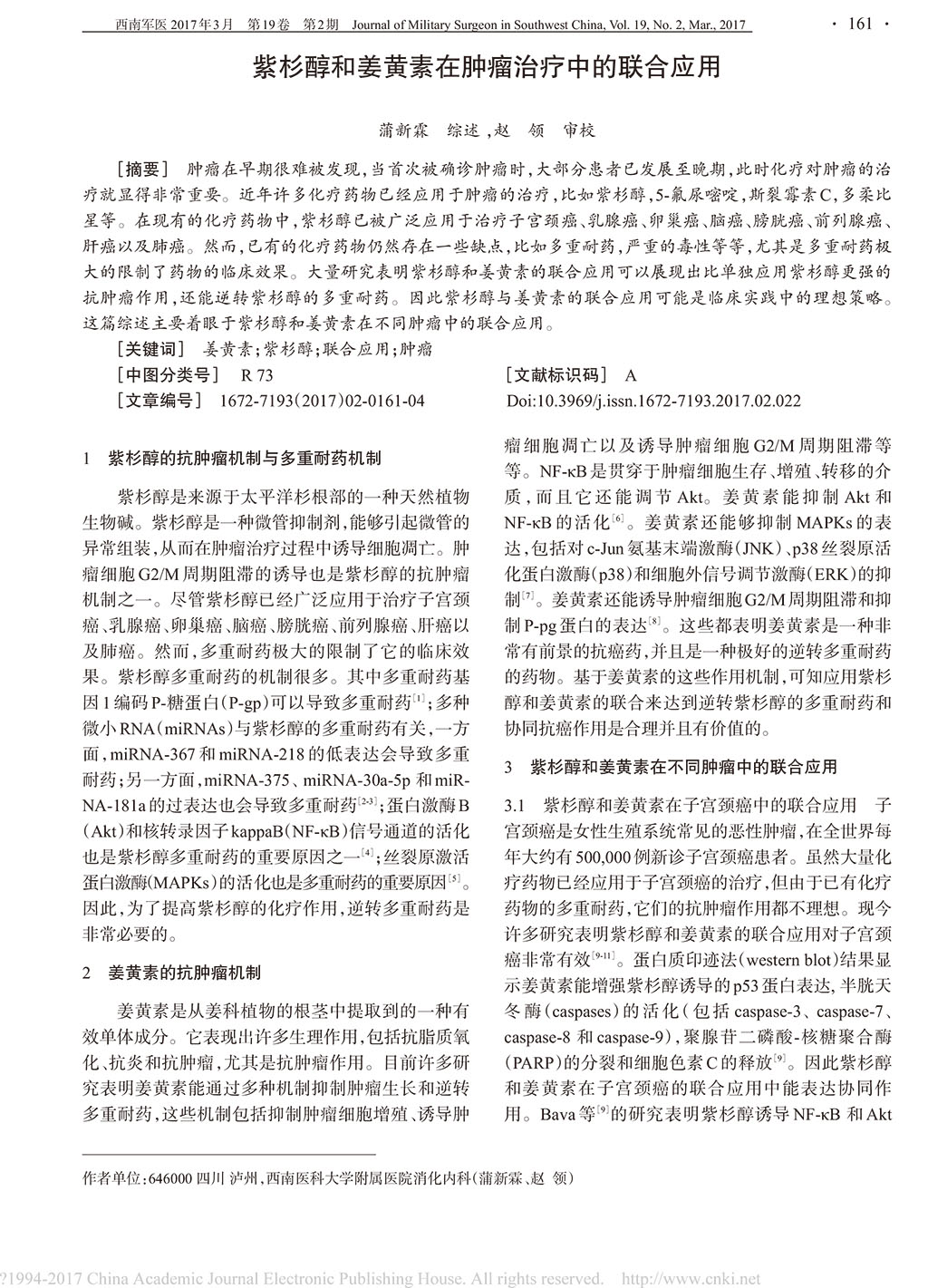 紫杉醇和姜黃素在腫瘤治療中的聯(lián)合應(yīng)用_蒲新霖